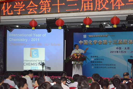 中國化學(xué)會(huì)第十三屆膠體與界面化學(xué)會(huì)議于2011年7月20-25日在龍城太原舉行,會(huì)議由中國化學(xué)會(huì)主辦,受膠體與界面化學(xué)專業(yè)委員會(huì)委托,中國日用化學(xué)工業(yè)研究院和山西大學(xué)化學(xué)化工學(xué)院共同承辦。